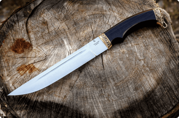 Шикарный. Мощный клинок с очень внушительным ребром жесткости. Изящная рукоять.